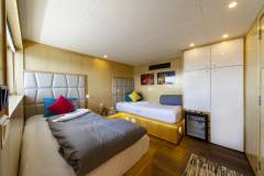 - 3x Masterkabine Hauptdeck mit Panoramafenstern, Doppel- und Einzelbetten, Bad mit Dusche/WC